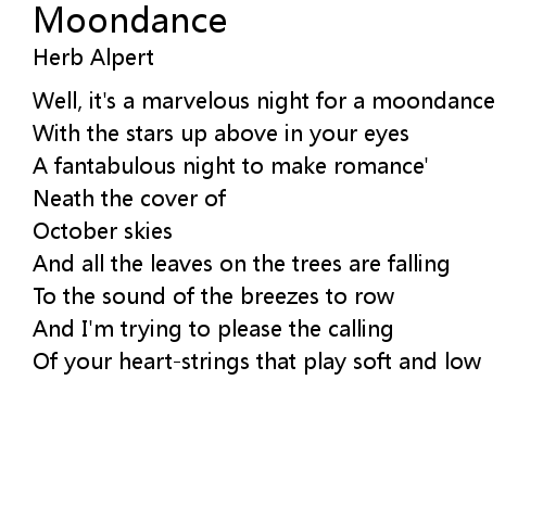 | Well, it's a marvelous night for a moondance | |