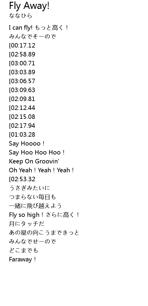 | [00:31.30][02:17.94][03:21.93] | Fly Away! |