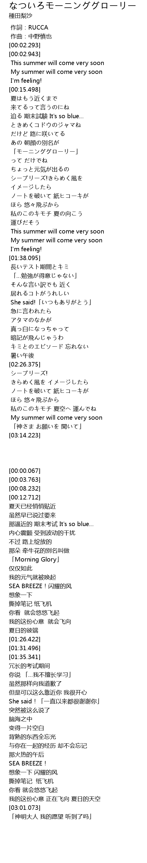 | [00:50.328] | 「モーニンググローリー」 |