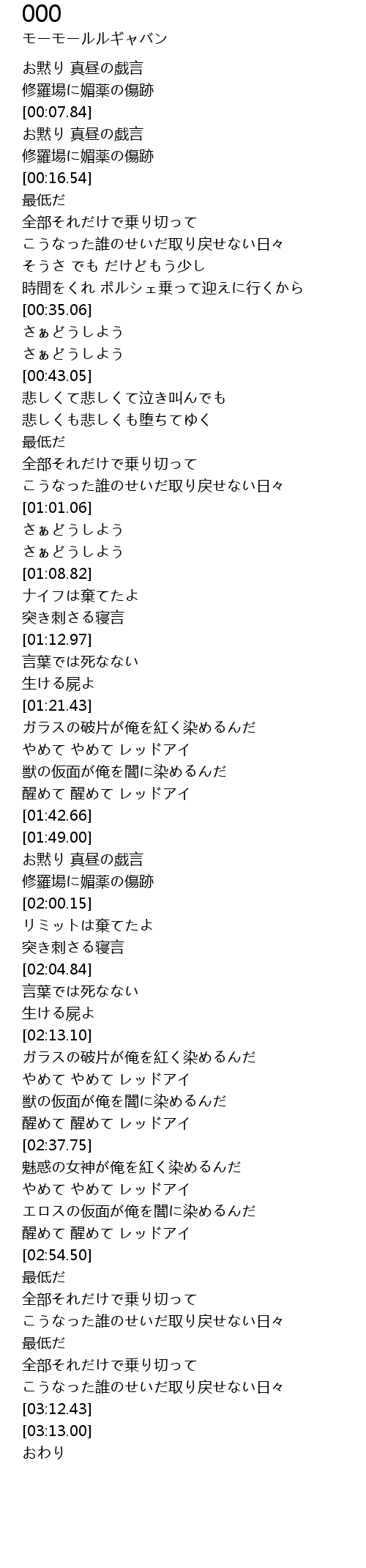 | [02:34.41] | 醒めて 醒めて レッドアイ |