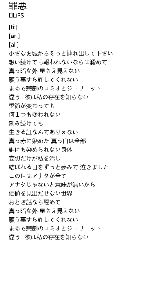| [02:29.65] | まるで悲劇のロミオとジュリエット |