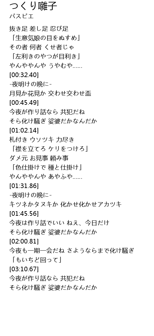 | [01:55.80] | そら化け騒ぎ 娑婆だかなんだか |