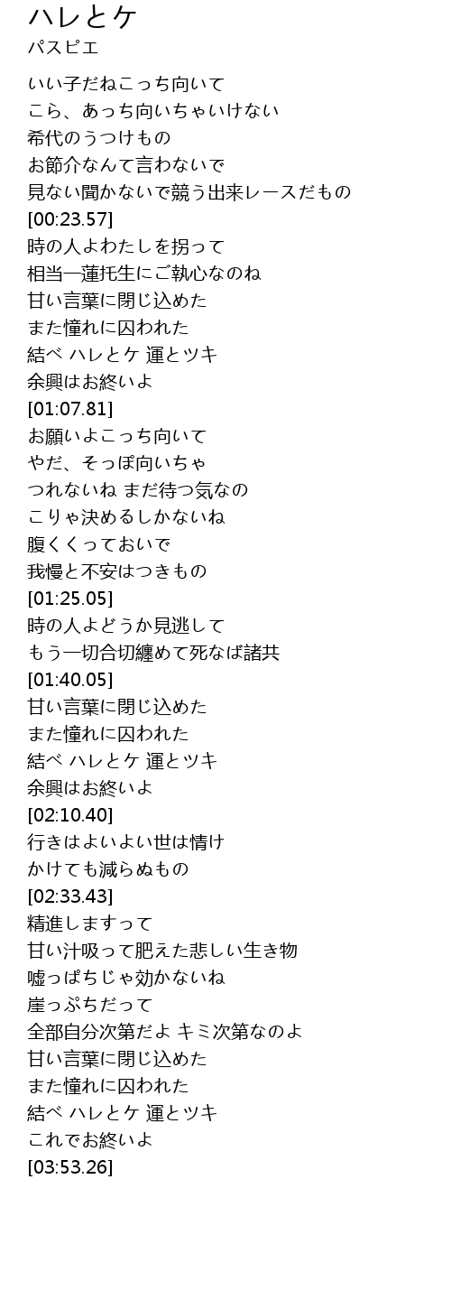 | [03:37.39] | 結べ ハレとケ 運とツキ |