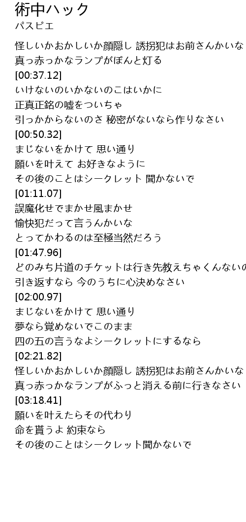 | [00:51.50] | まじないをかけて 思い通り |