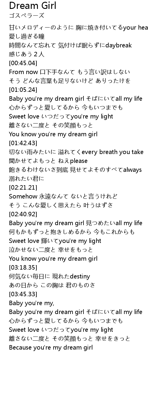 | [02:43.14] | Baby you're my dream girl 見つめたいall my life |