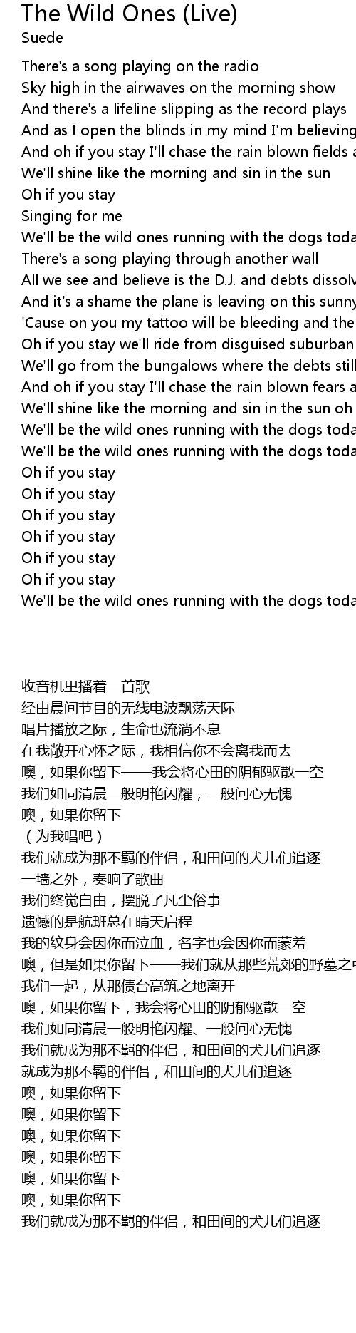 The Wild Ones (Live) Lyrics