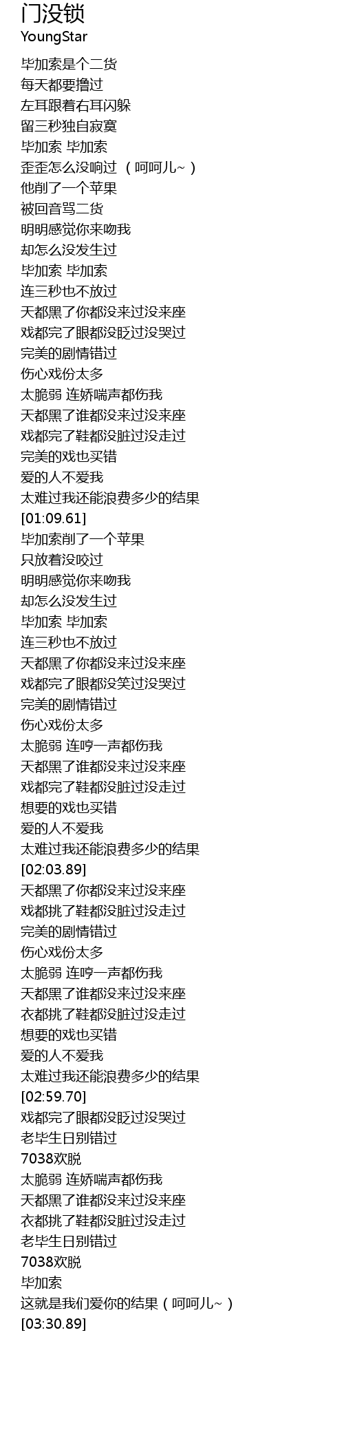 | [03:04.61] | xi dou wan le yan dou mei zha guo mei ku guo |
