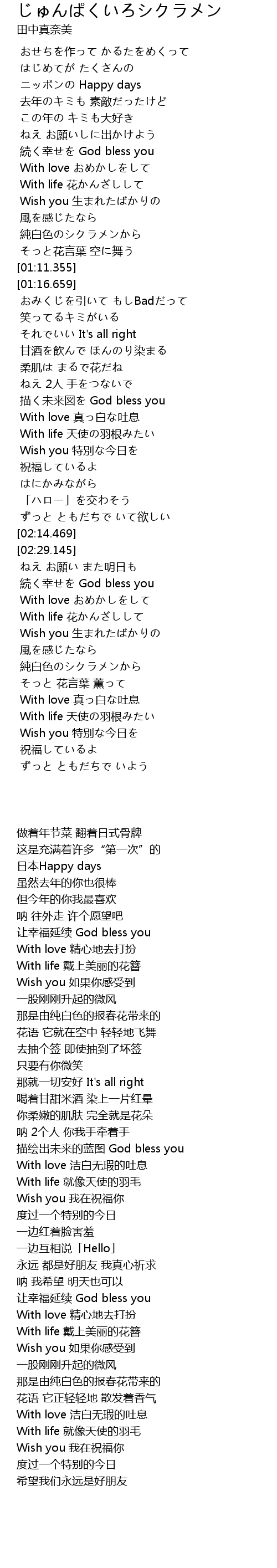| [00:43.472] | 続く幸せを God bless you |