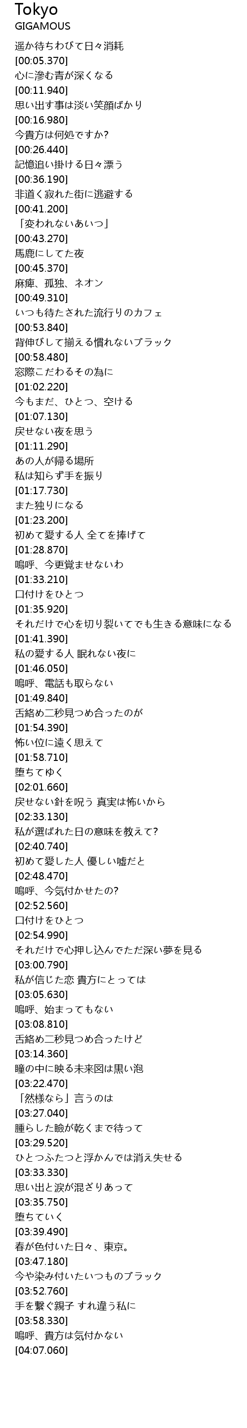 | [03:43.650] | 春が色付いた日々、東京。 |