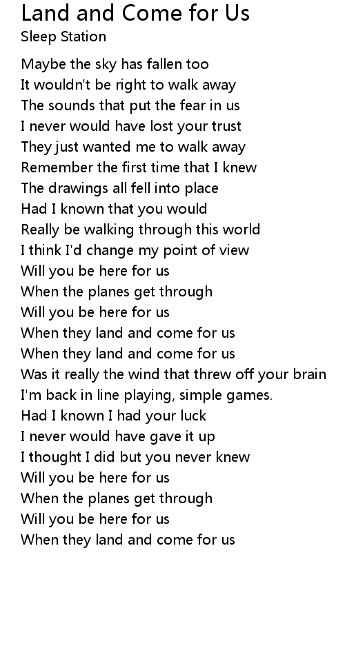 Land and Come for Us Lyrics