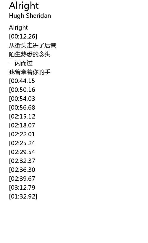 | [02:58.02][02:29.54][01:14.67] | Alright |