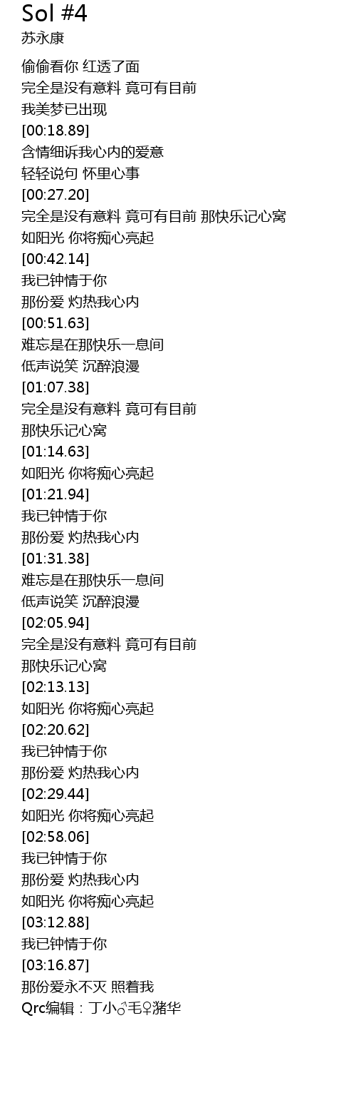 | [00:20.20] | 含情细诉我心内的爱意 |