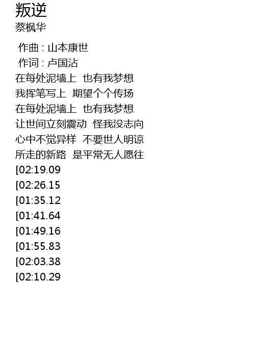 | [00:01.00] | 作词 : 卢国沾 |