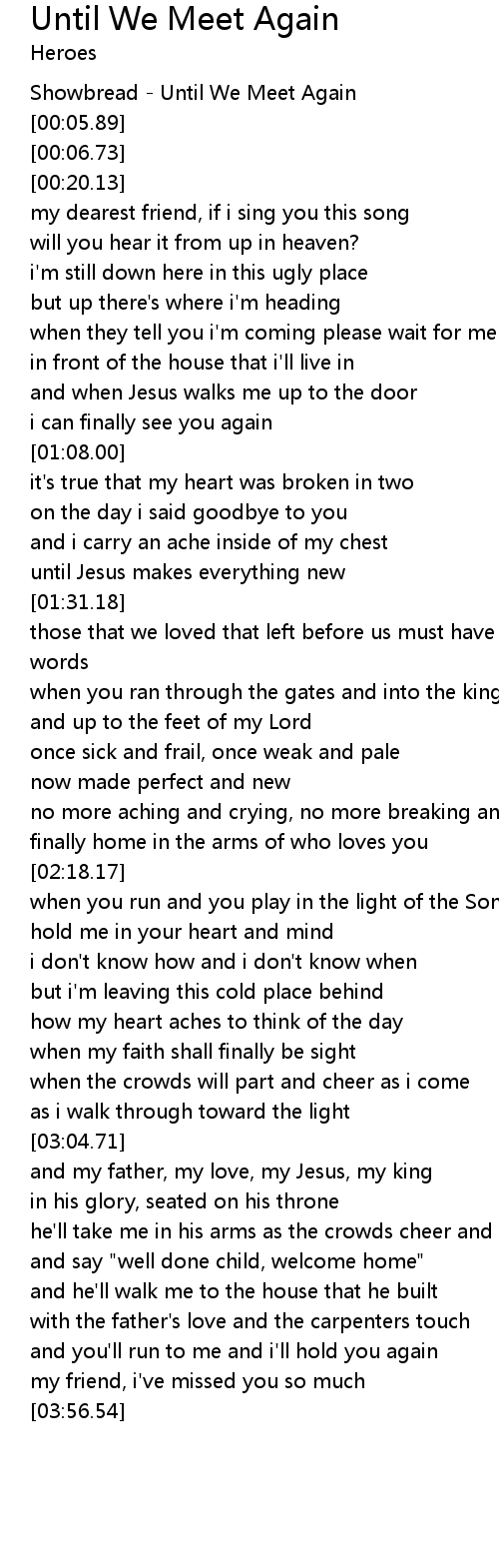 Showbread - Until We Meet Again |