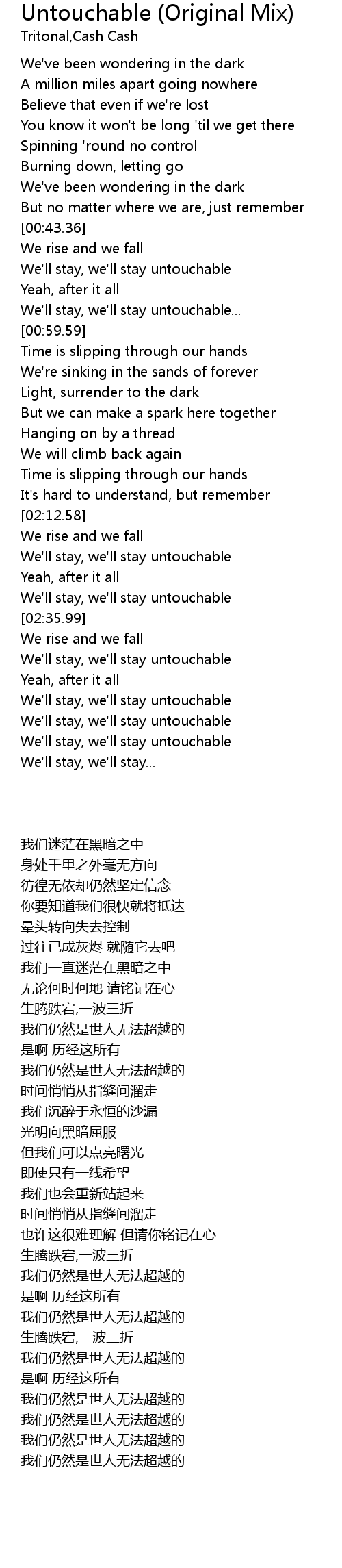 | [00:48.64] | We'll stay, we'll stay untouchable |