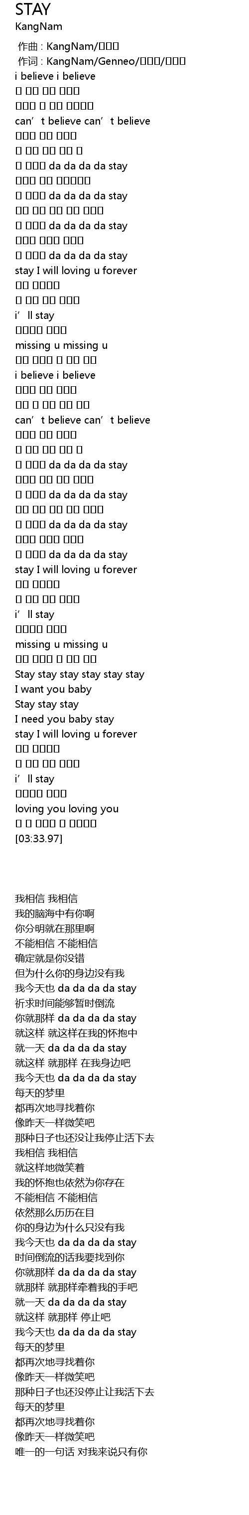 | [00:36.54] | 나 오늘도 da da da da stay |