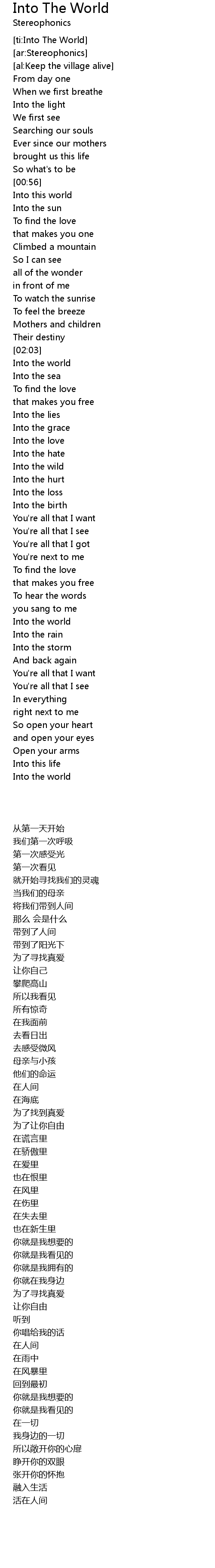 | [ti:Into The World] | |