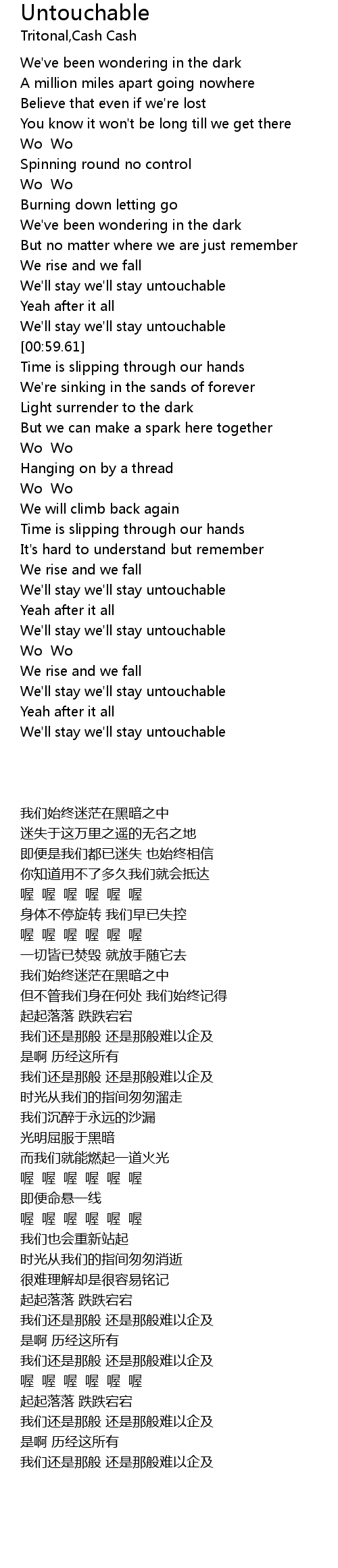 | [00:55.93] | We'll stay we'll stay untouchable |
