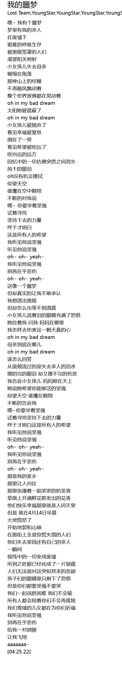 | [00:48.47] | hēi wǒ yǒu gè è mèng |