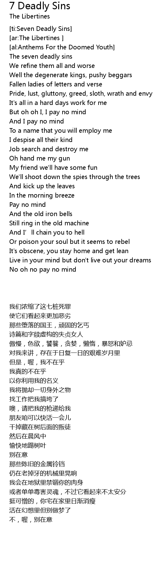 | [00:33.27] | The seven deadly sins |