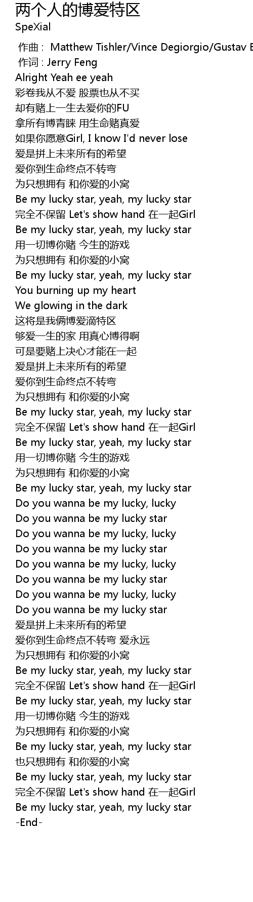 | [02:23.26] | Be my lucky star, yeah, my lucky star |
