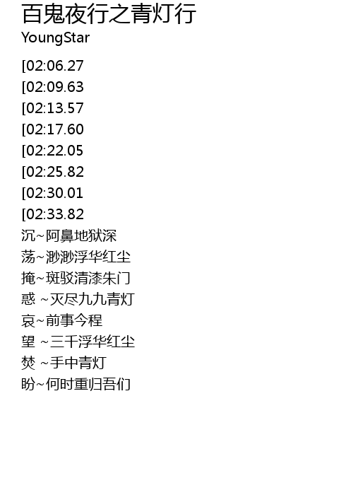 | [00:17.72][02:09.63] | 点幽幽幽冥青灯 |