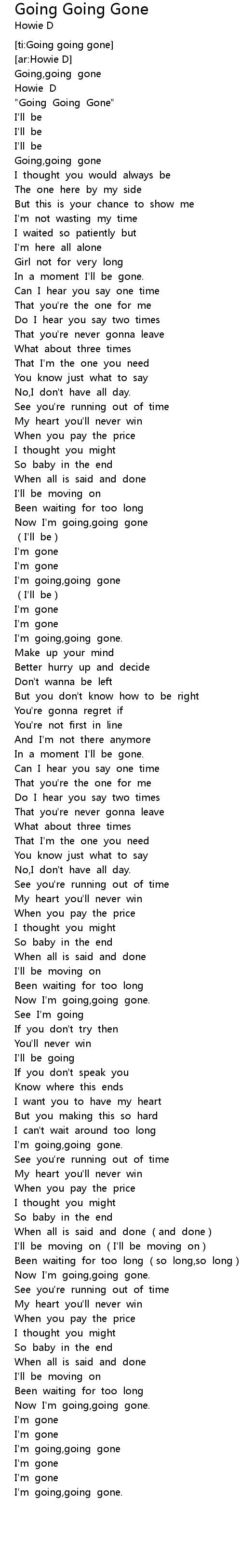 | [00:00.20] | Going,going gone |