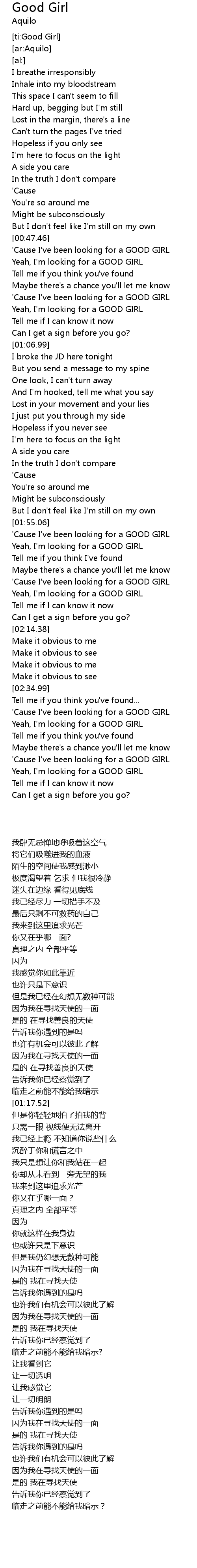 | [02:46.87] | Yeah, I'm looking for a GOOD GIRL |