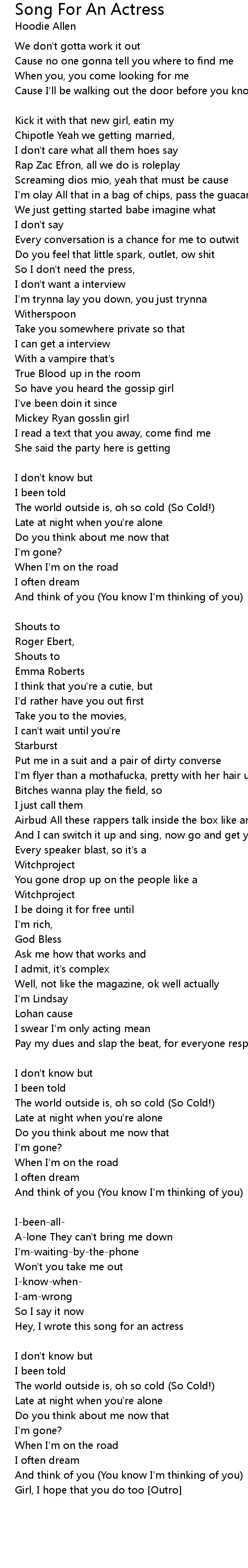 I wrote this song for an actress [Hook] |