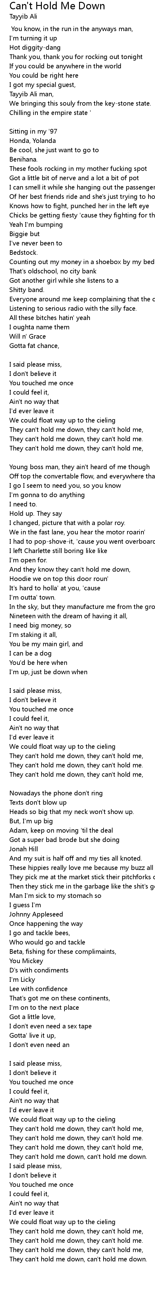 Can't Hold Me Down Lyrics