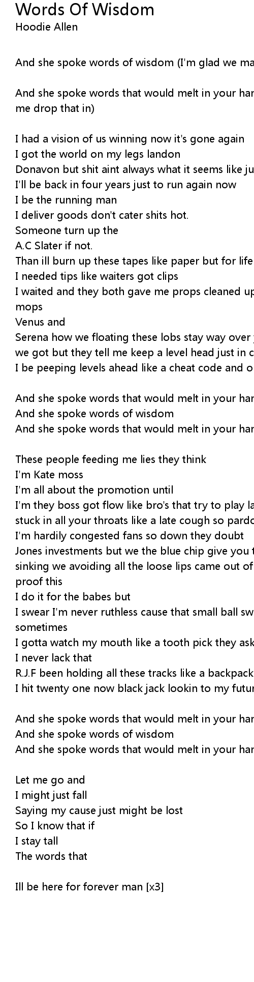 And she spoke words of wisdom (I'm glad we made it its hoodie its hoodie) [-Hoodie] |