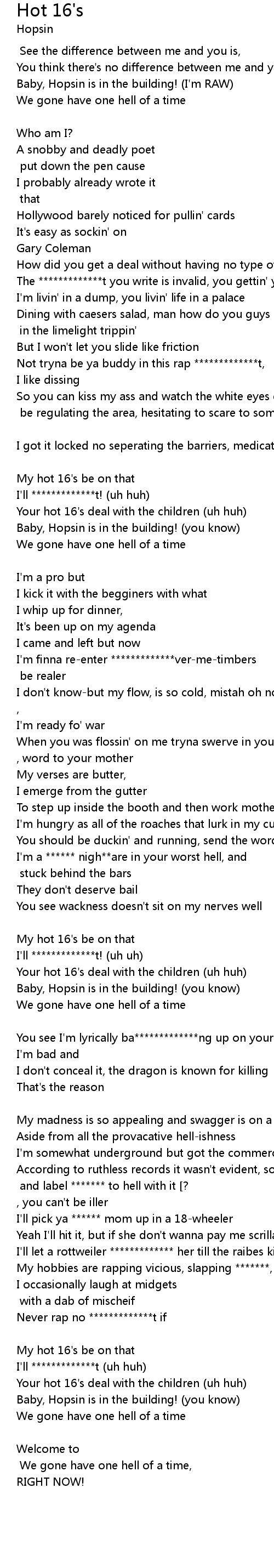 | Baby, Hopsin is in the building! (I'm RAW) | |