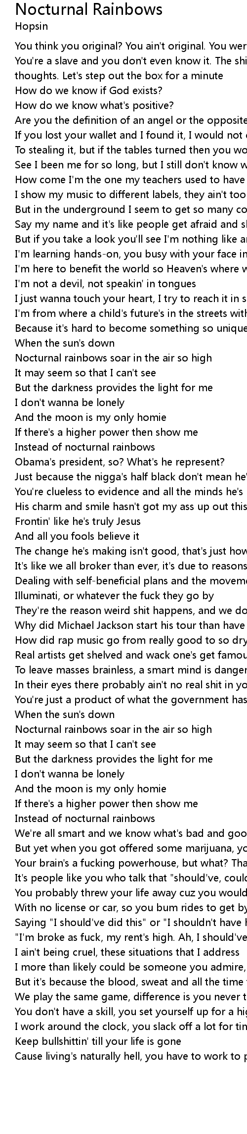 | In their eyes there probably ain't no real shit in your playlist | |