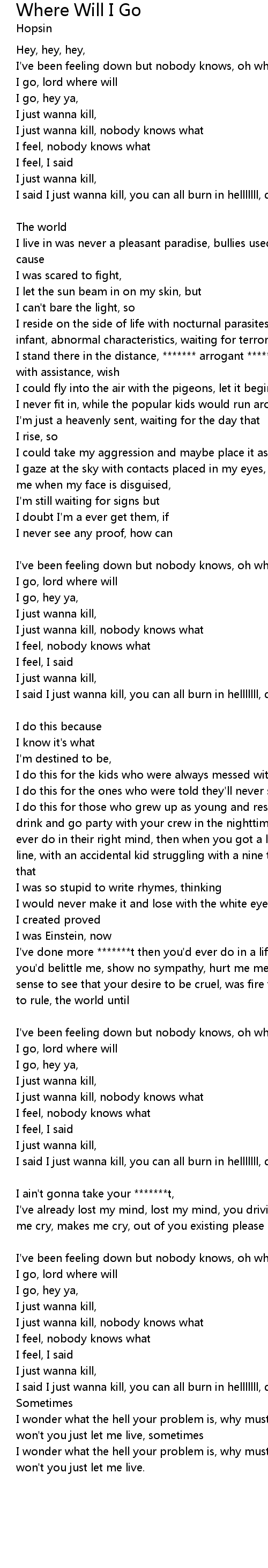 | I said I just wanna kill, you can all burn in helllllll, don't ******* with me. | |