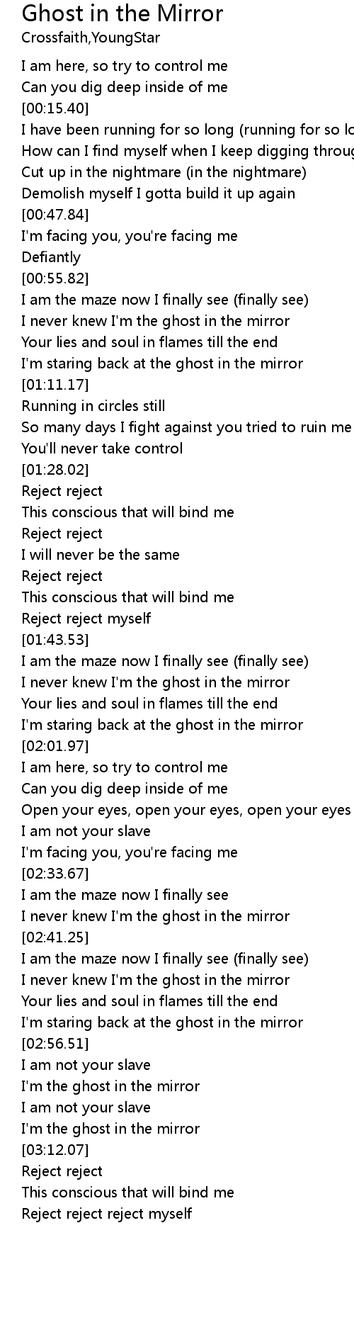 | [01:47.63] | I never knew I'm the ghost in the mirror |