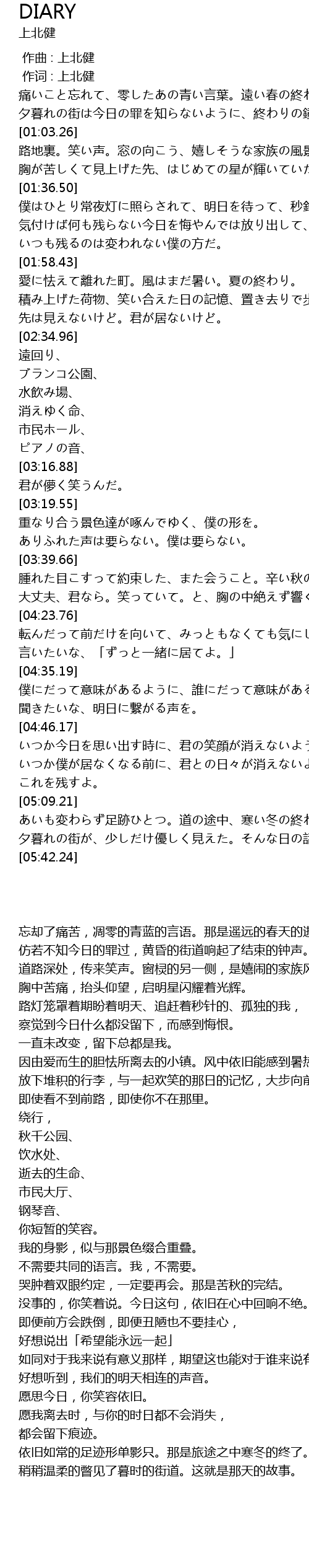 | [00:01.00] | 作词 : 上北健 |
