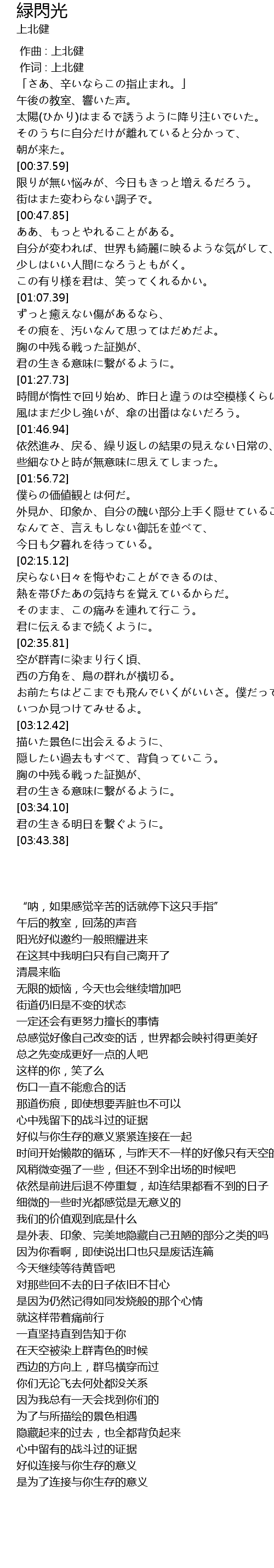 | [03:40.31] | 君の生きる明日を繋ぐように。 |