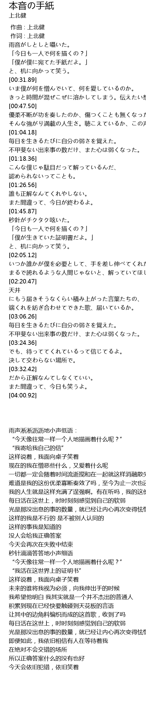 | [00:24.78] | 「僕が僕に宛てた手紙だよ。」 |