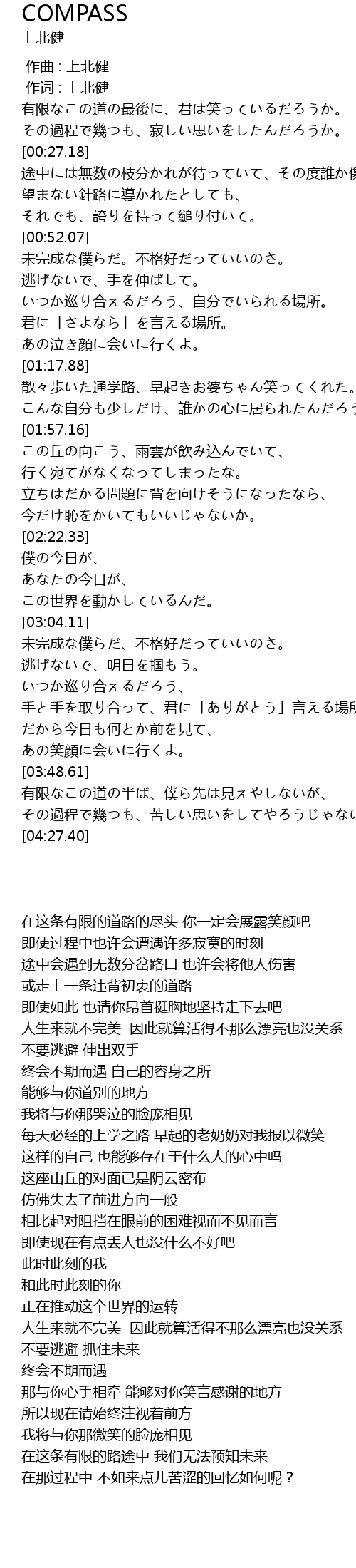 | [00:01.00] | 作词 : 上北健 |