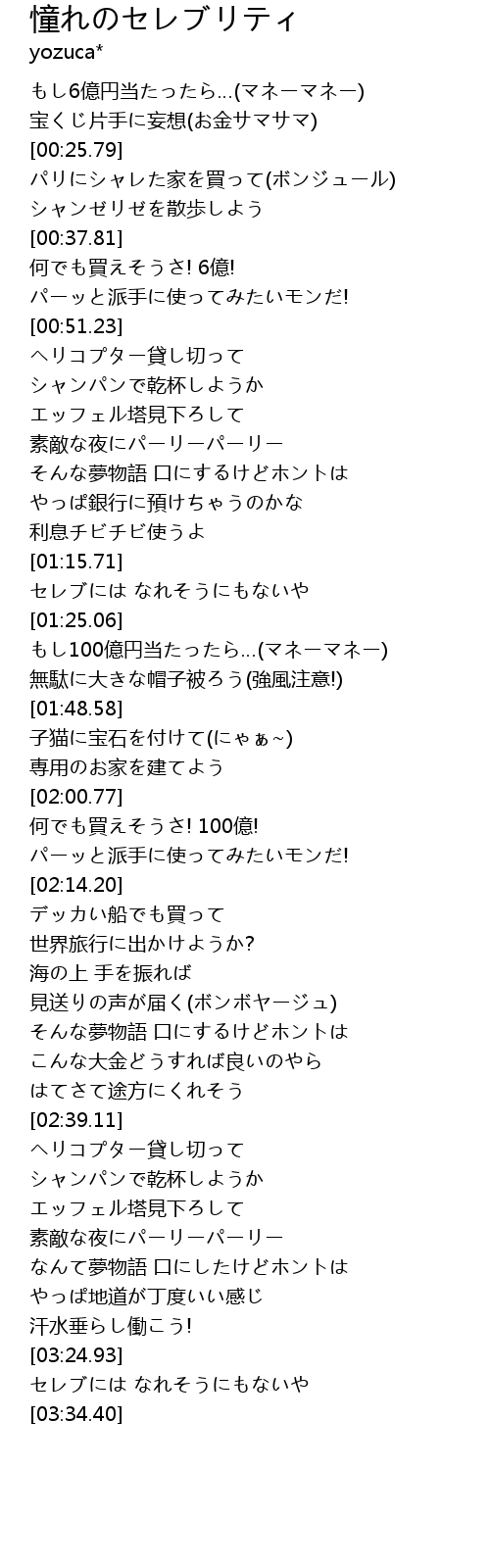 | [00:20.16] | 宝くじ片手に妄想(お金サマサマ) |