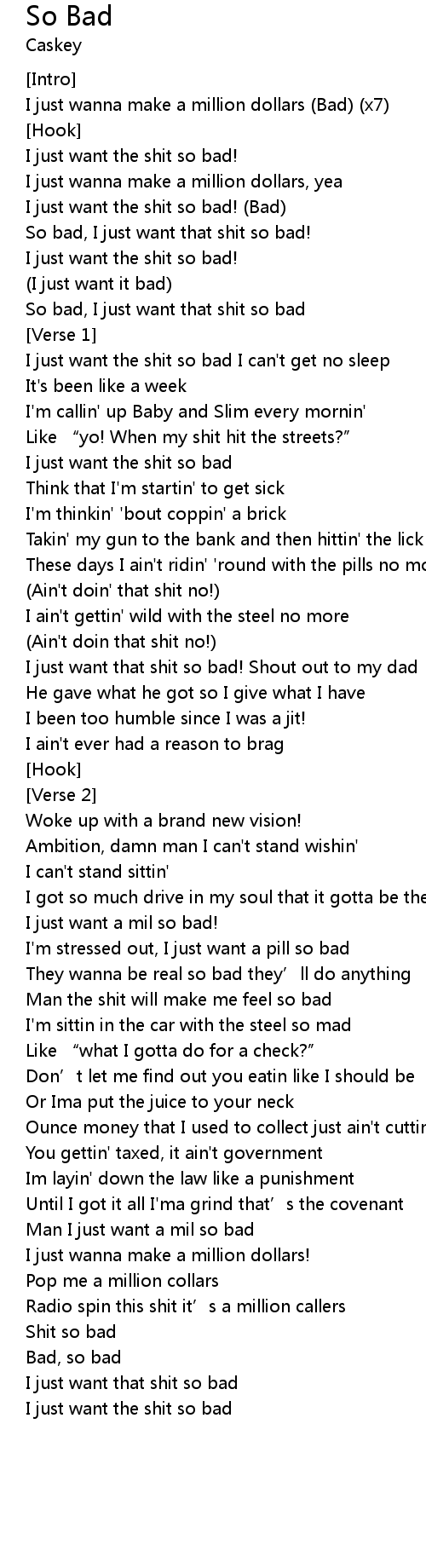 | I just wanna make a million dollars (Bad) (x7) | |