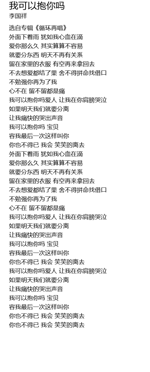 | [02:42.98] | 我可以抱你吗爱人 让我在你肩膀哭泣 |