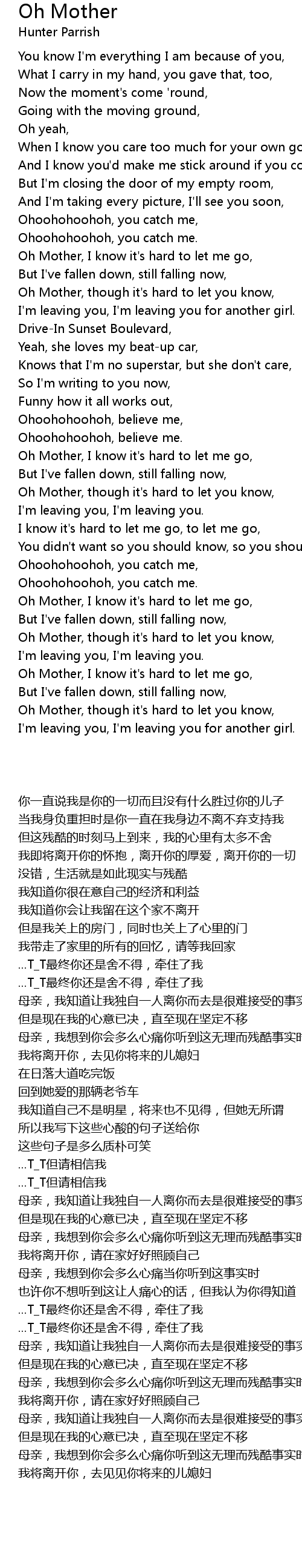 Oh Mother, though it's hard to let you know, |