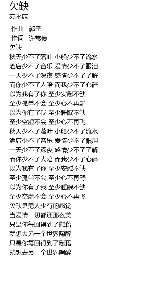 | [04:02.21] | 欠缺是男人少有的感觉 |