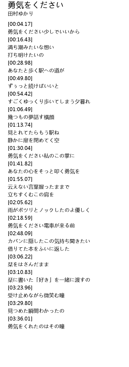 | [01:43.50] | あなたの心をそっと叩く勇気を |