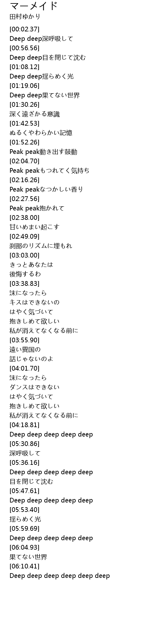| [06:01.70] | Deep deep deep deep deep |