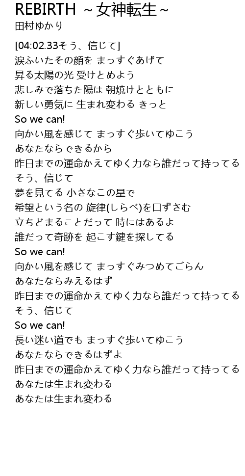| [02:58.40] | 昨日までの運命かえてゆく力なら誰だって持ってる |