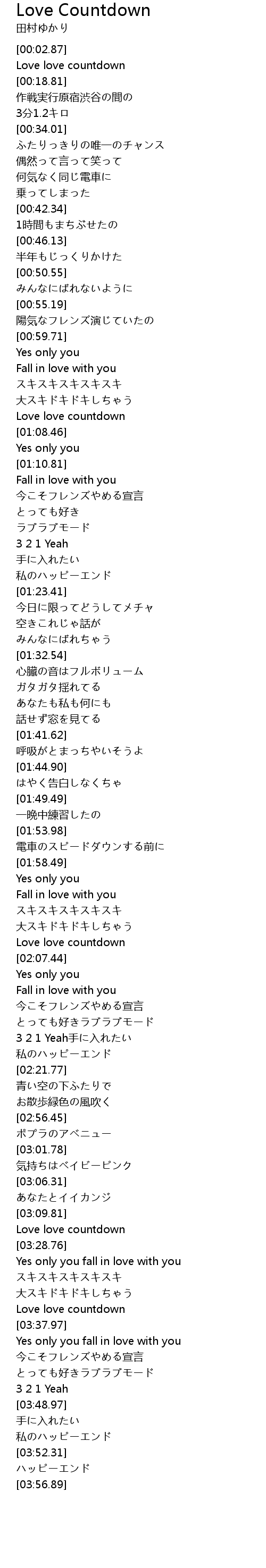 | [00:34.65] | ふたりっきりの唯一のチャンス |