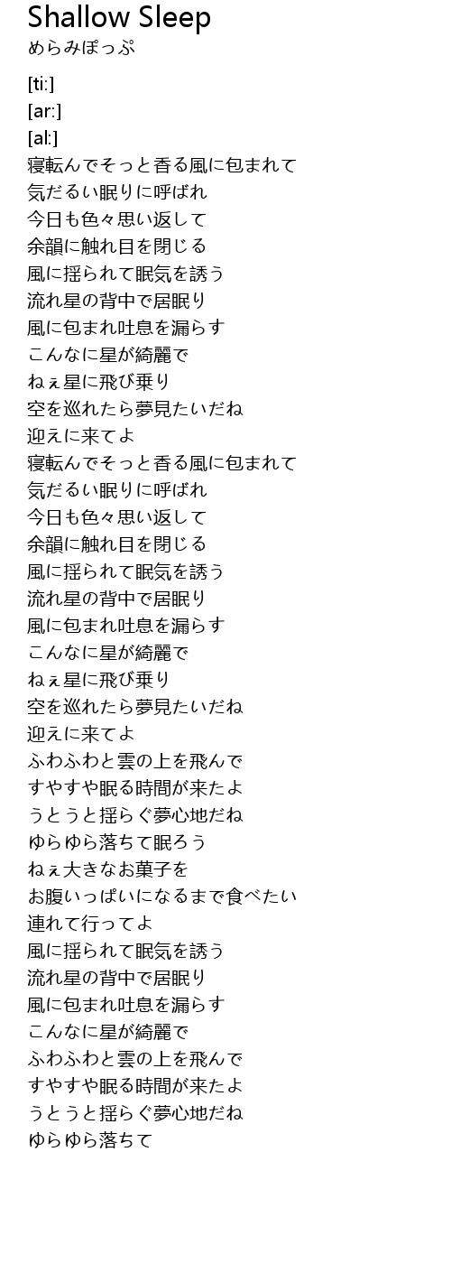 | [02:44.40] | ゆらゆら落ちて眠ろう |