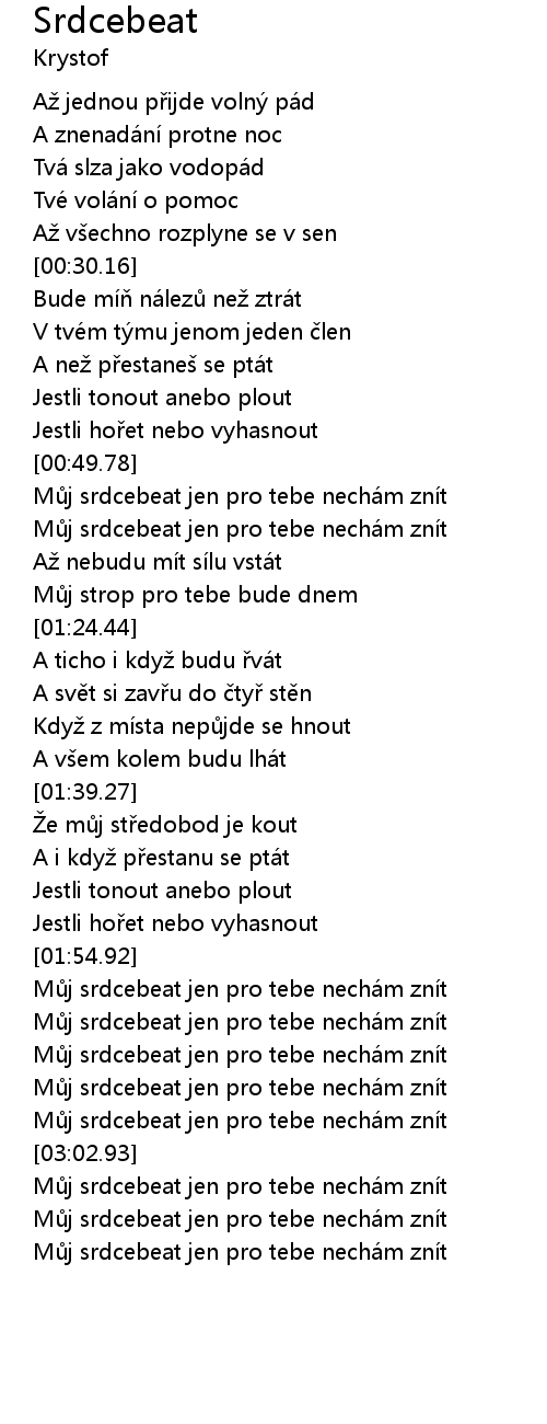| [03:12.96] | M j srdcebeat jen pro tebe necha m zni t |